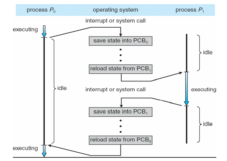 -> 다시 P1 실행 종료 후, PCB1에 P1 상태 저장 -> PCB0으로부터 P0 다시 실행.