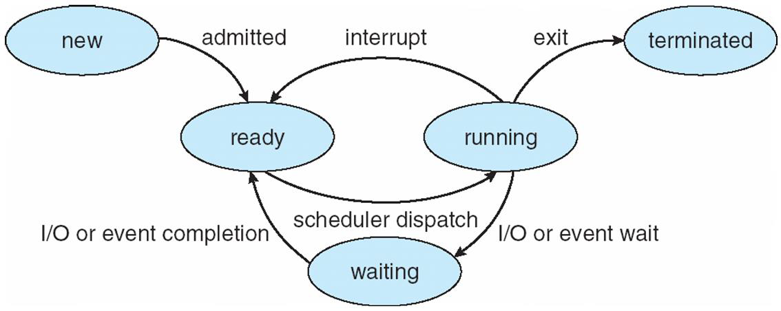 - 프로세스 상태(Process State) : new, ready, running, waiting, terminated 상태 중 하나에 해당됨