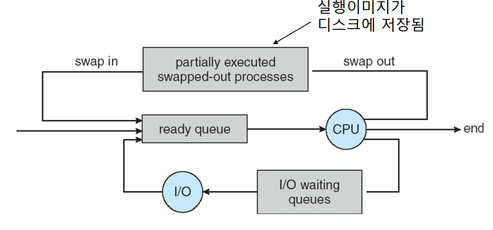 -> Ready queue 작업을 디스크로 돌려보냄. (Swap out)